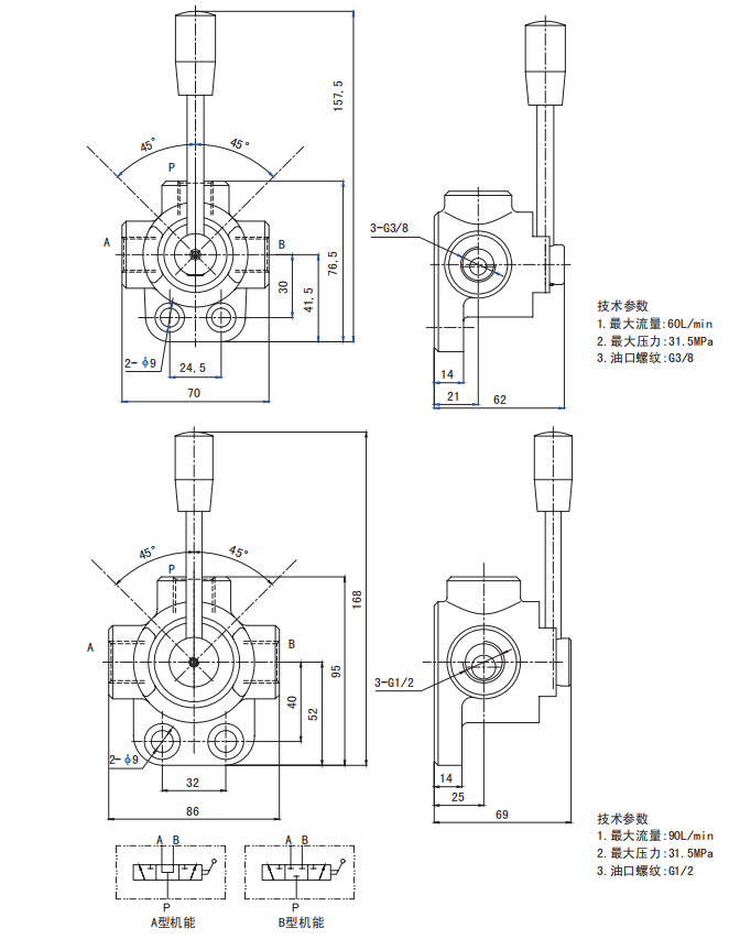 RV列液壓轉(zhuǎn)閥是由閥體、內(nèi)部閥芯和手柄桿組成。轉(zhuǎn)閥有3通,4通,6通,8通,可以根據(jù)客戶需要定制,同時有中位開啟和關(guān)閉兩種不同的閥芯機能,流量從60LPM到200LPM,RV系列液壓轉(zhuǎn)閥可以實現(xiàn)快速正確的切換油缸和馬達之間的油路??蛻艨梢赃x擇3通油路,可以從A切換到B或者在中位回油箱。